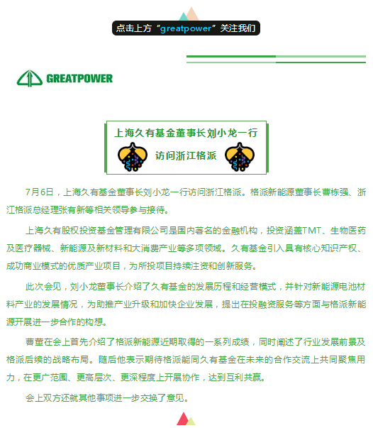 上海久有基金董事長(zhǎng)一行訪(fǎng)問(wèn)浙江格派