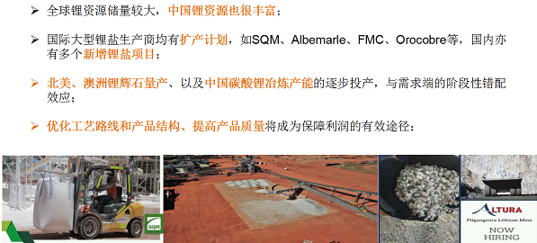 另外,全球鋰資源豐富,主要集中在澳洲、北美及南美的鋰三角地帶。近兩年鋰資源開發(fā)和鋰鹽產(chǎn)能建設(shè)的釋放速度都比較快,且遠(yuǎn)大于需求端的增長(zhǎng)速度,在一定程度上出現(xiàn)了錯(cuò)配效應(yīng),但相信在新能源汽車行業(yè)的發(fā)展下,鋰業(yè)的未來仍有較好前景。
