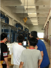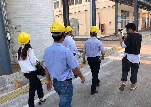 總經(jīng)理帶著幾位客戶參觀車間,他專注而帶勁的介紹仿佛已然忘卻在拍攝,沉醉于與客戶交談中。