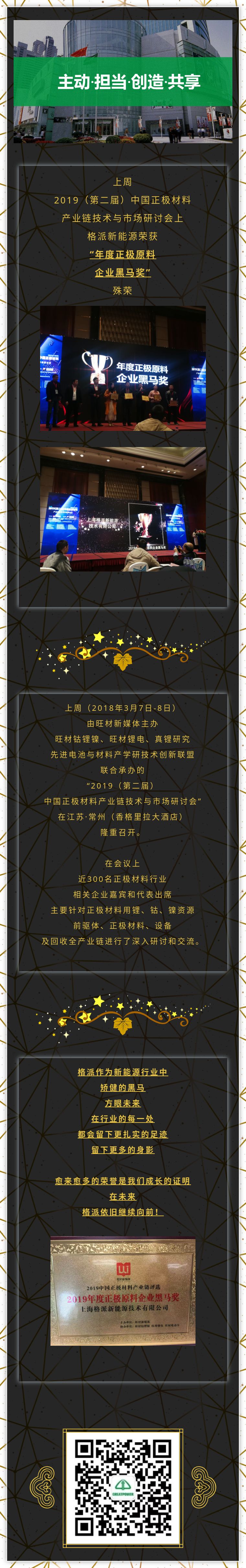 格派新能源榮獲"年度正極原料企業(yè)黑馬獎(jiǎng)"