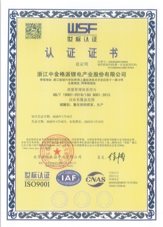 2019年,浙江格派不斷提升產(chǎn)品品質(zhì),轉(zhuǎn)變戰(zhàn)略,采取以質(zhì)取勝的方式,同時,改變銷售理念,尋求長期戰(zhàn)略合作伙伴和開發(fā)核心客戶,最終,產(chǎn)品得到國內(nèi)外客戶的認可和好評,并且出口的產(chǎn)品達到歐盟嚴格的綠色環(huán)保要求。浙江格派完成了第三方對公司供應鏈盡責管理審核,建立鈷供應鏈盡責管理體系,成為國外知名汽車制造企業(yè)價值鏈成員。