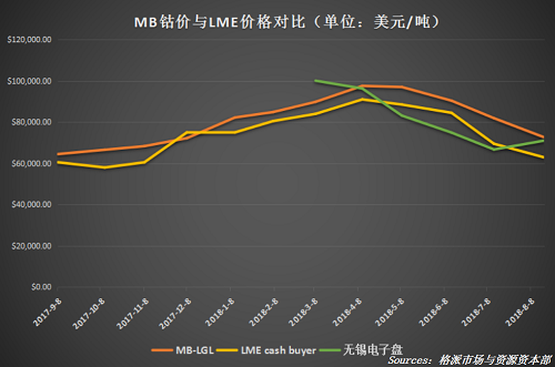 鈷方面,曹董強(qiáng)先生與大家分享一些數(shù)據(jù)分析結(jié)果,即2018年1-7月中國(guó)進(jìn)口鈷中間品11.17萬噸,鈷精礦7.25萬噸;折鈷金屬量共計(jì)4.26萬噸。預(yù)計(jì)2018年中國(guó)進(jìn)口鈷金屬量為7.5-8萬噸(含鎳原料帶入、自產(chǎn)精礦及進(jìn)口白合金等)。這在一定程度上反映了鈷上游資源供應(yīng)的增加,但是由于環(huán)保對(duì)冶煉產(chǎn)能的限制,中游生產(chǎn)商依然可以保有一些利潤(rùn)。