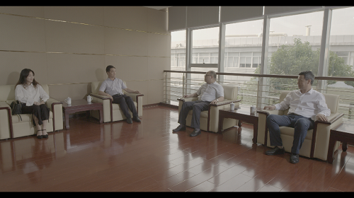 總經(jīng)理帶著幾位客戶參觀車間,他專注而帶勁的介紹仿佛已然忘卻在拍攝,沉醉于與客戶交談中。