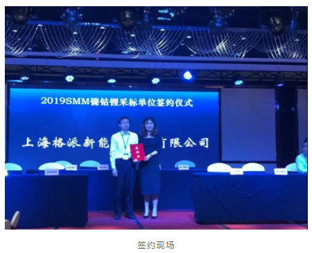 2019年4月28日,在四川宜賓上海有色網(wǎng)(SMM)主辦的2019年第四屆鎳鈷鋰錳產(chǎn)業(yè)鏈峰會上,上海格派新能源技術(shù)有限公司作為35家SMM鎳鈷鋰采標(biāo)單位之一,與SMM進(jìn)行了采標(biāo)單位現(xiàn)場簽約儀式。