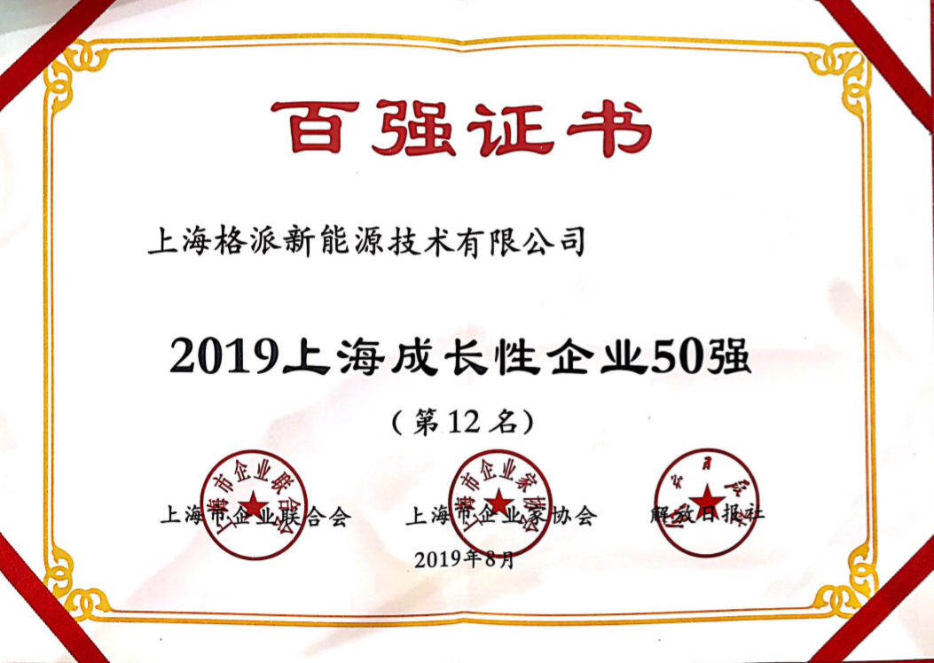 8月19日,2019上海百強(qiáng)企業(yè)發(fā)布會(huì)在上海漕河涇萬麗酒店召開。格派新能源憑借其良好營收業(yè)績和企業(yè)表現(xiàn),躋身百強(qiáng),被評為“2019上海服務(wù)業(yè)企業(yè)100強(qiáng)”、"2019上海民營服務(wù)業(yè)企業(yè)100強(qiáng)"和“2019上海成長性企業(yè)50強(qiáng)”。
